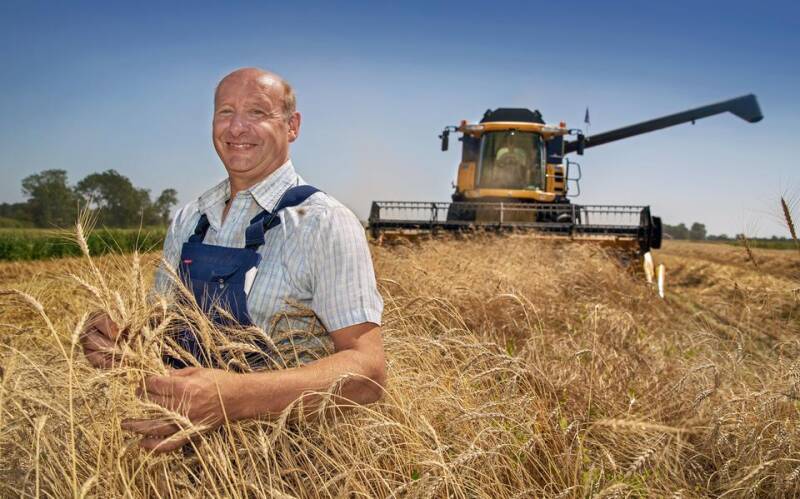 Foto van de boer, hij bekijkt zijn oogst, wat wordt hier van gemaakt?